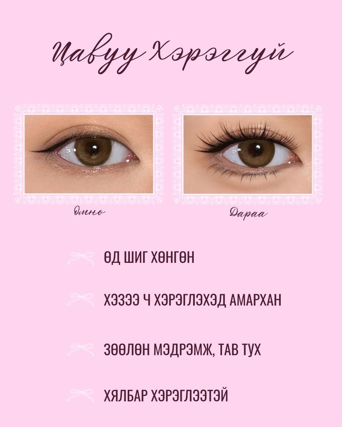 - Хэт ойр нааж, сормуус хооронд амьсгалгүй орон зай үүсгэхгүй байх.
