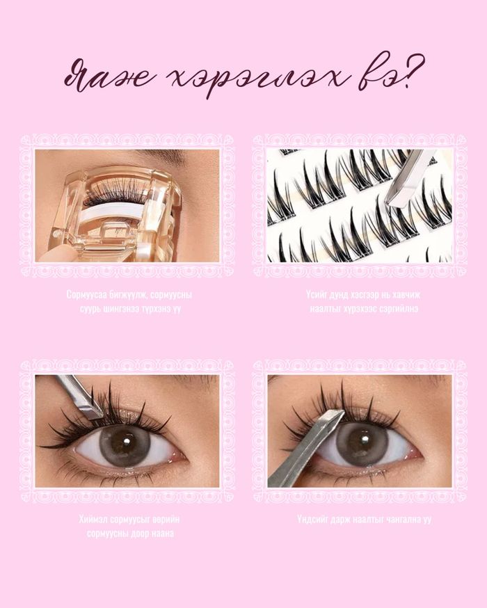 💡 Хэрвээ илүү тогтоц хүсвэл урьдчилан бага зэрэг eyelash glue хэрэглэж болно, гэхдээ шаардлагагүй.